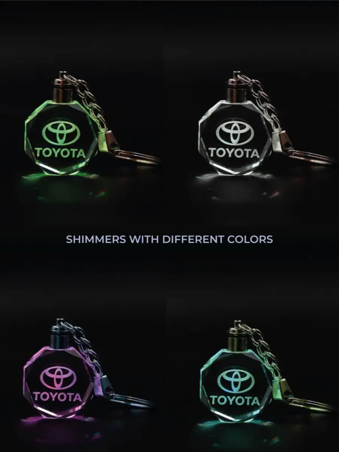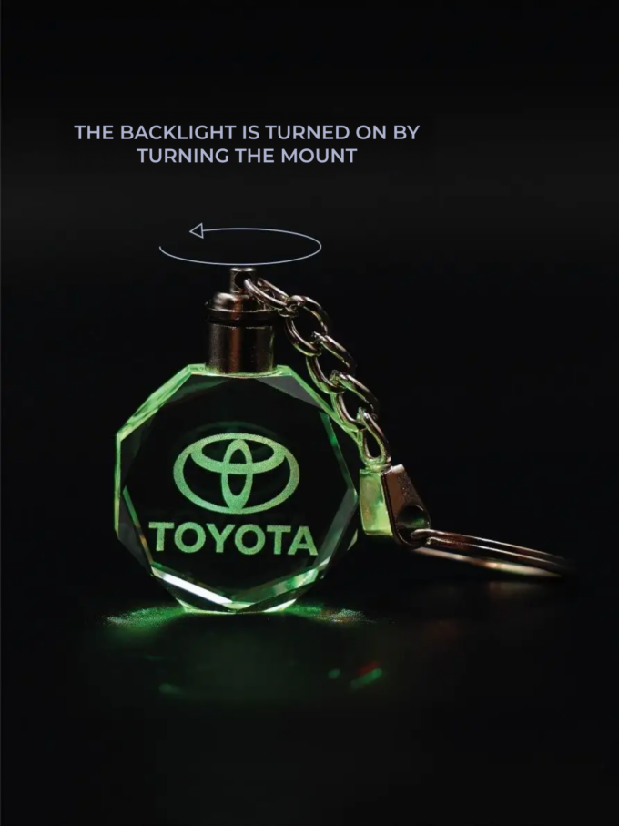 This stylish and unique TOYOTA LED car keychain is a striking accessory that will make you stand out among motorists. The car logo is 3D laser-engraved in crystal and illuminated with a shimmering LED light. Watch the video for a clearer illustration. This TOYOTA LED car keychain comes in a gift box and makes a wonderful gift for both men and women, for any occasion. The keychain weighs 33 grams without packaging, and 50 grams with packaging. The keychain can also be used as a car pendant. This stylish, engraved car accessory is sure to attract attention, emphasize individuality, and distinguish its owner from other car enthusiasts. This unusual and affordable gift will delight a husband or father, a friend, a partner, or a colleague.